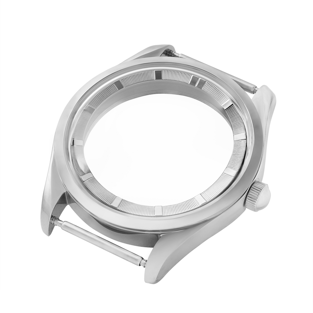 NMK952 36mm Engine Turned Bezel Dress Case Bundle: Steel Finish