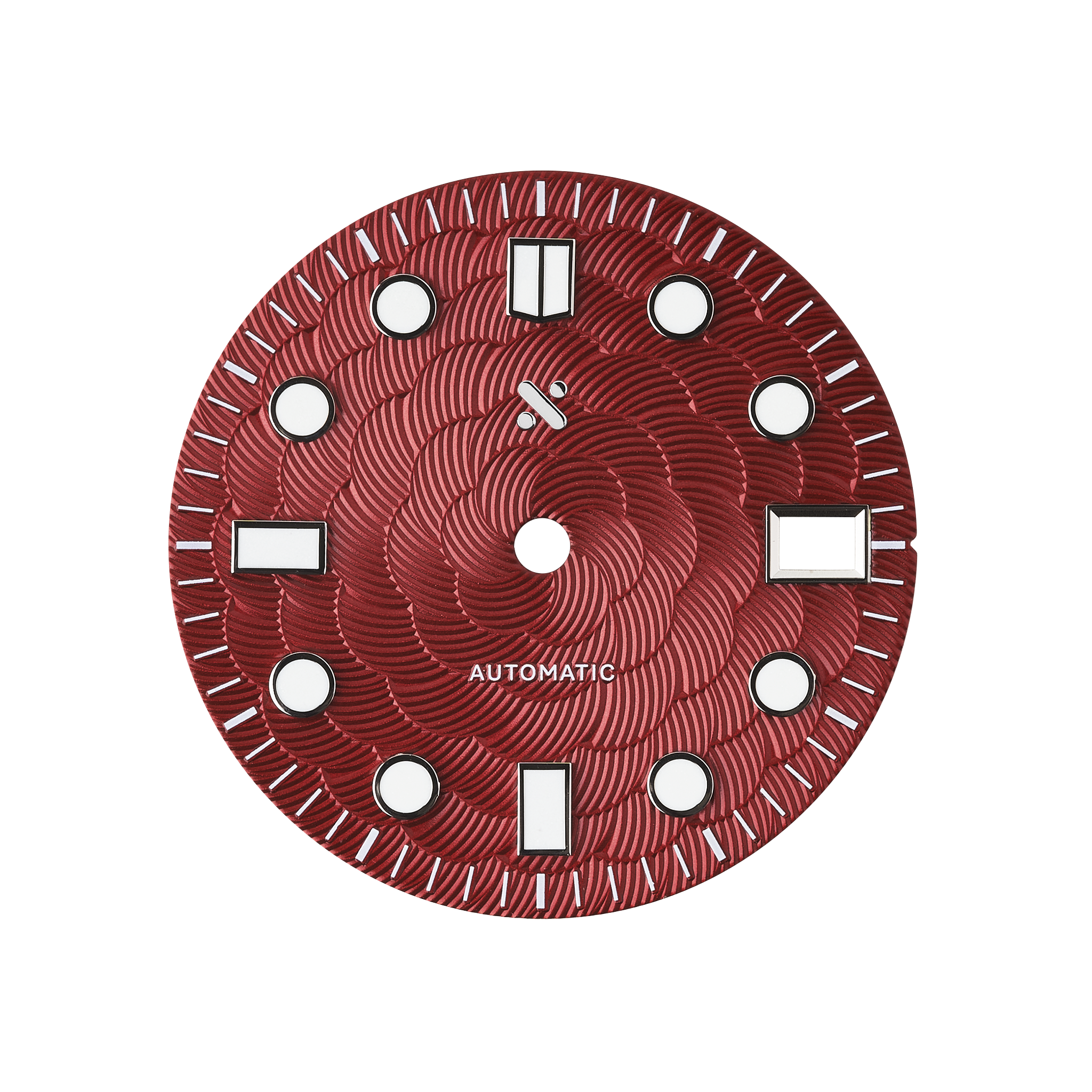 We're back with more engraved dials with this Sakura dial in red finish. It has an intricate design pattern fanning out that reminds us of a cherry blossom and a light sunburst finish that shimmers at different angles, all while having a wonderful complexity that doesn't distract from being a very readable dial.