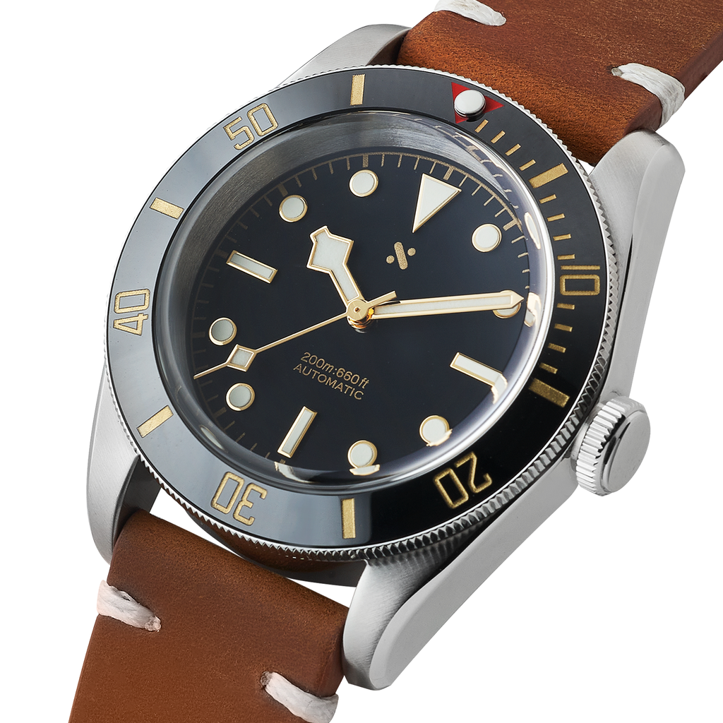 The NMK11 pays homage to the eternal crowd favourites BB58, a vintage styled diver complete with details such as an ultra slim low profile bezel and top hat sapphire crystal.
