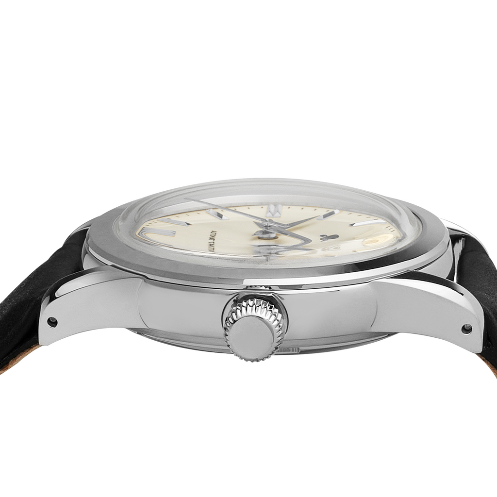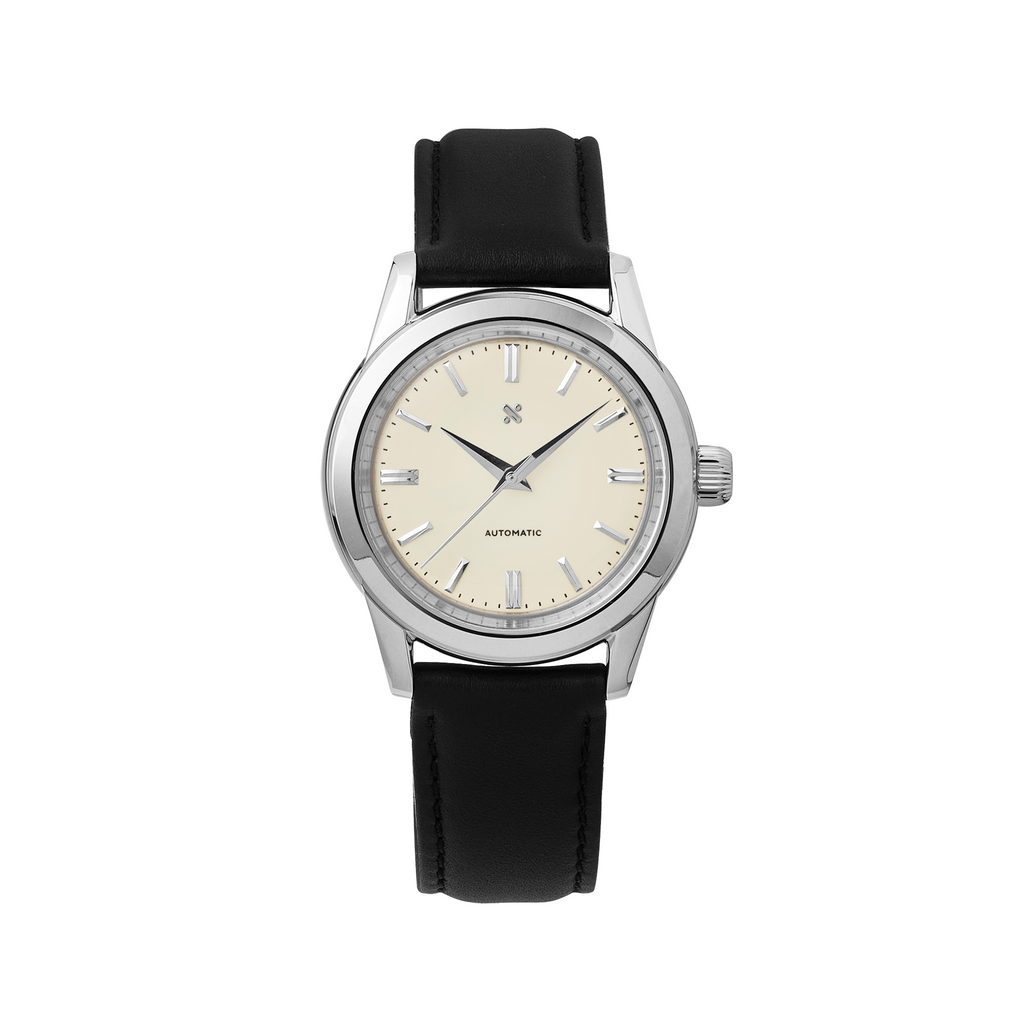 The NMK15 Automatic Dress Watch: GS Steel exudes vintage charm and refined sophistication. Inspired by vintage dress watches with details such as a top hat box crystal, full polished body and a petite, 37mm size, this watch is perfect for those weddings and formal events.