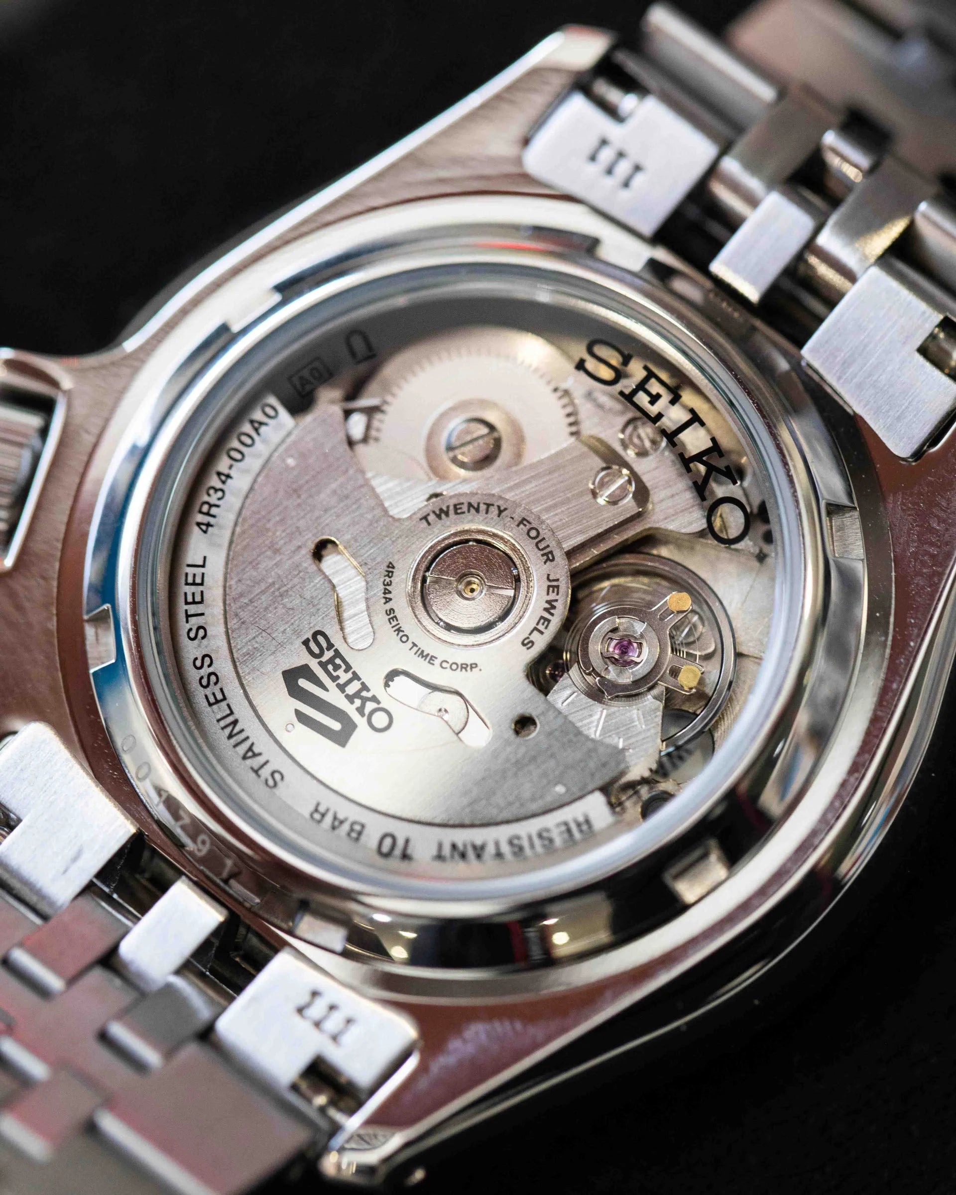 The real star of the SSK00X line is its 4R34 GMT movement. Watch lovers call this a "caller GMT" movement, which means you can independently move the GMT hand to show a different time zone. It’s an upgrade to the trusty 4R series of calibers, adding a coveted complication while only adding a few millimeters to its thickness that truly boggles the mind.