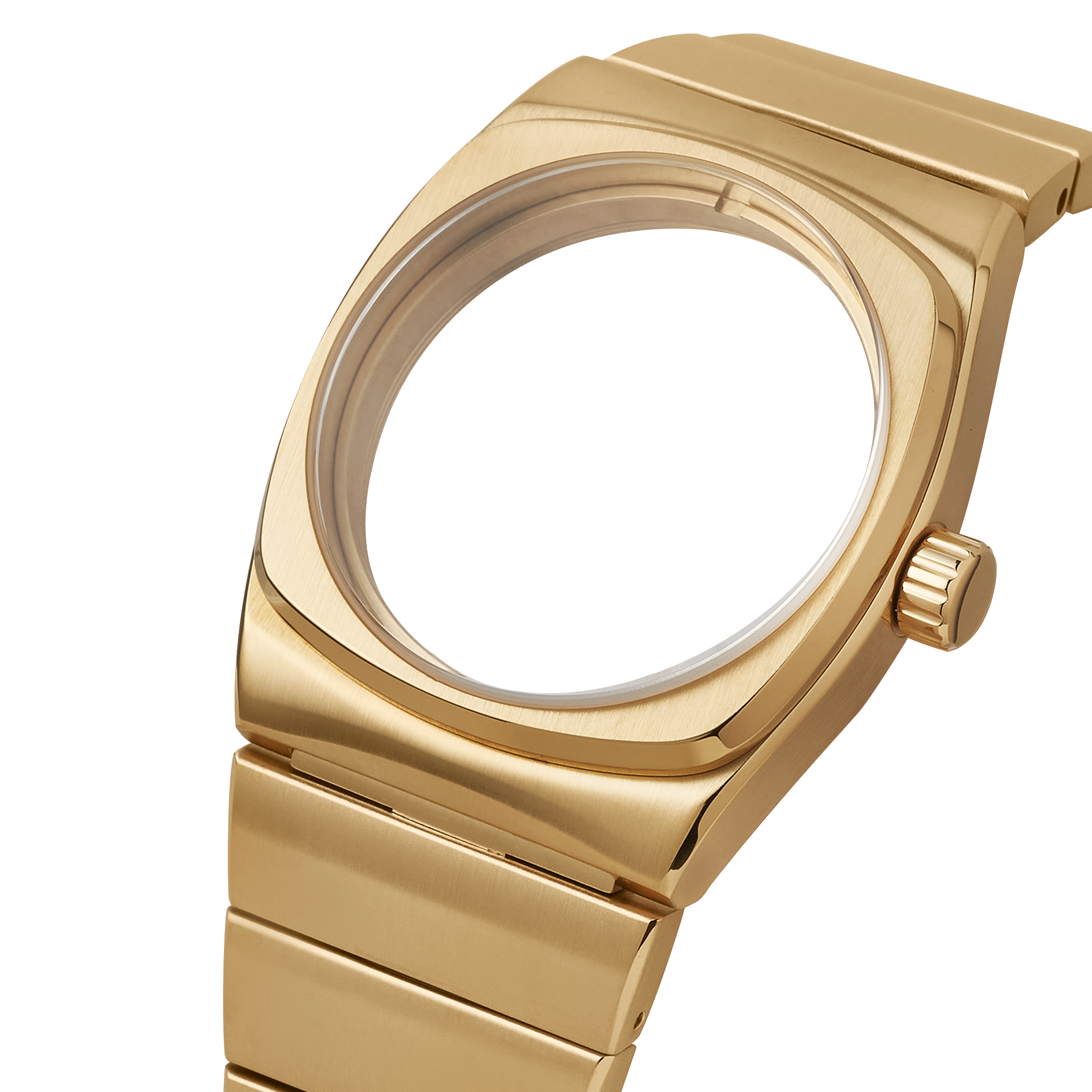 Bring retro yet futuristic flair to your watch builds with our NMK954 TV-Style Case in Gold Finish, a nod to the iconic "TV" cases of the 1970s. Named for their resemblance to vintage television sets, these cases became popular during an era when watch design broke away from tradition, embracing bold shapes and unique aesthetics.