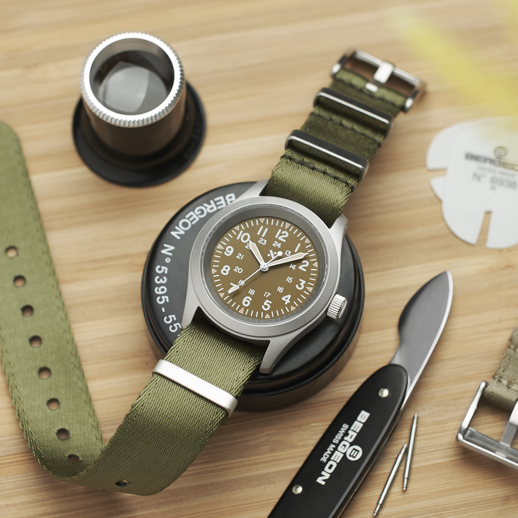 NMK09 Automatic Field Watch: Khaki with Sapphire Crystal on NATO Strap
