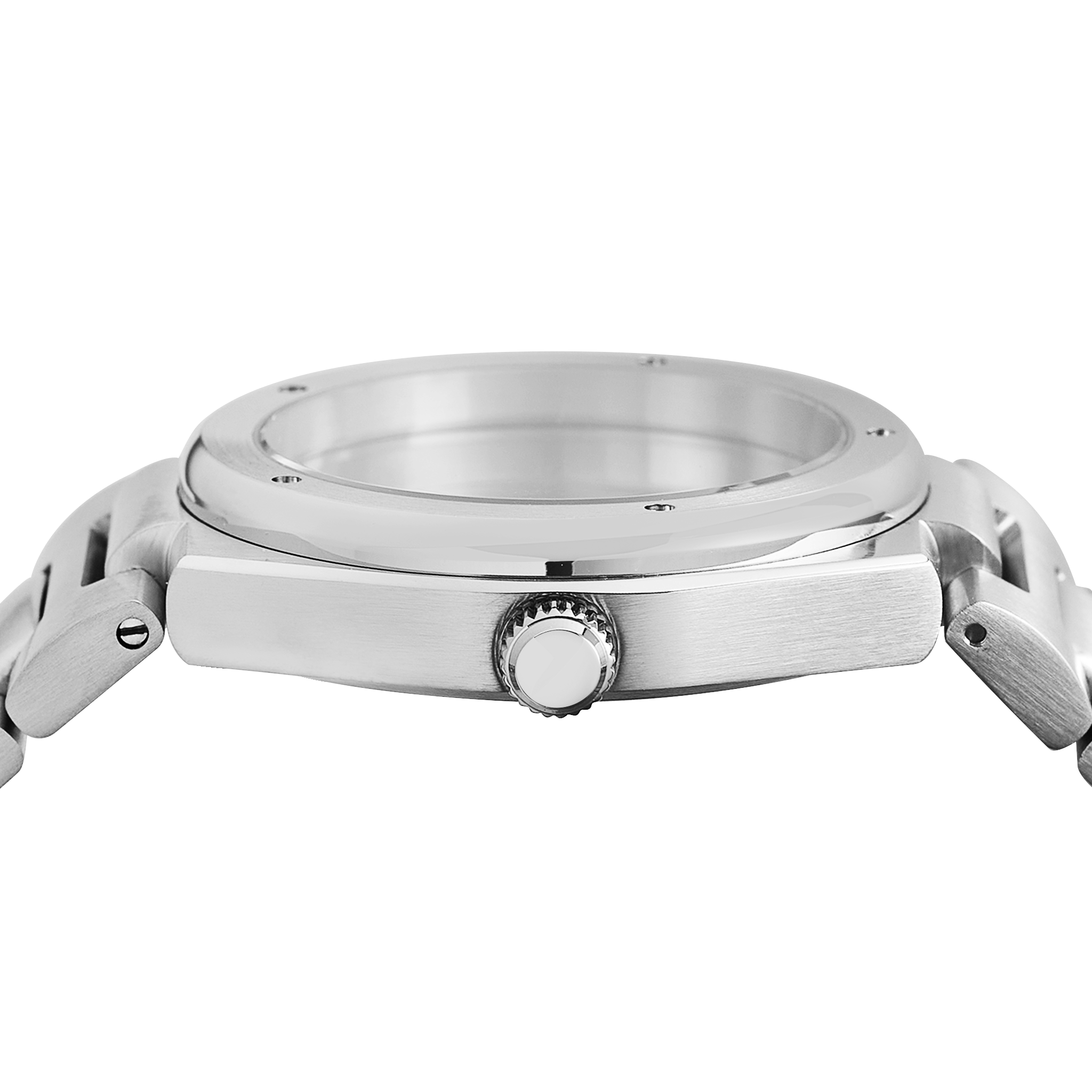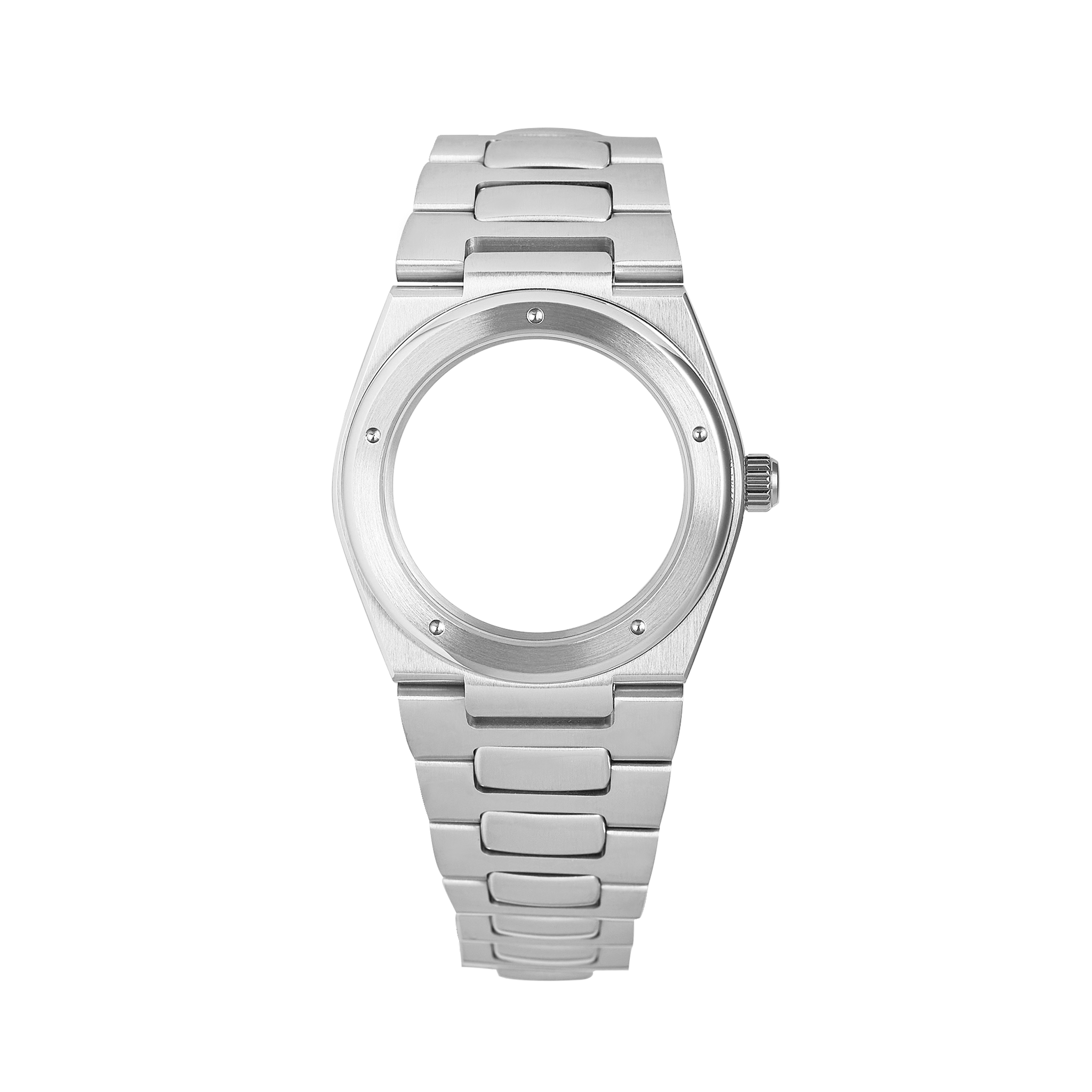 Our NMK958 Engineer 1832 Sports Watch Case in Steel Finish pays tribute to this pioneering design, staying true to its distinctive lines and details such as reccesses on the flat bezel while refining the proportions for a sleek, modern fit. The integrated H-link bracelet with milled butterfly deployant clasp completes the look, seamlessly flowing into the case for a cohesive, structured silhouette.