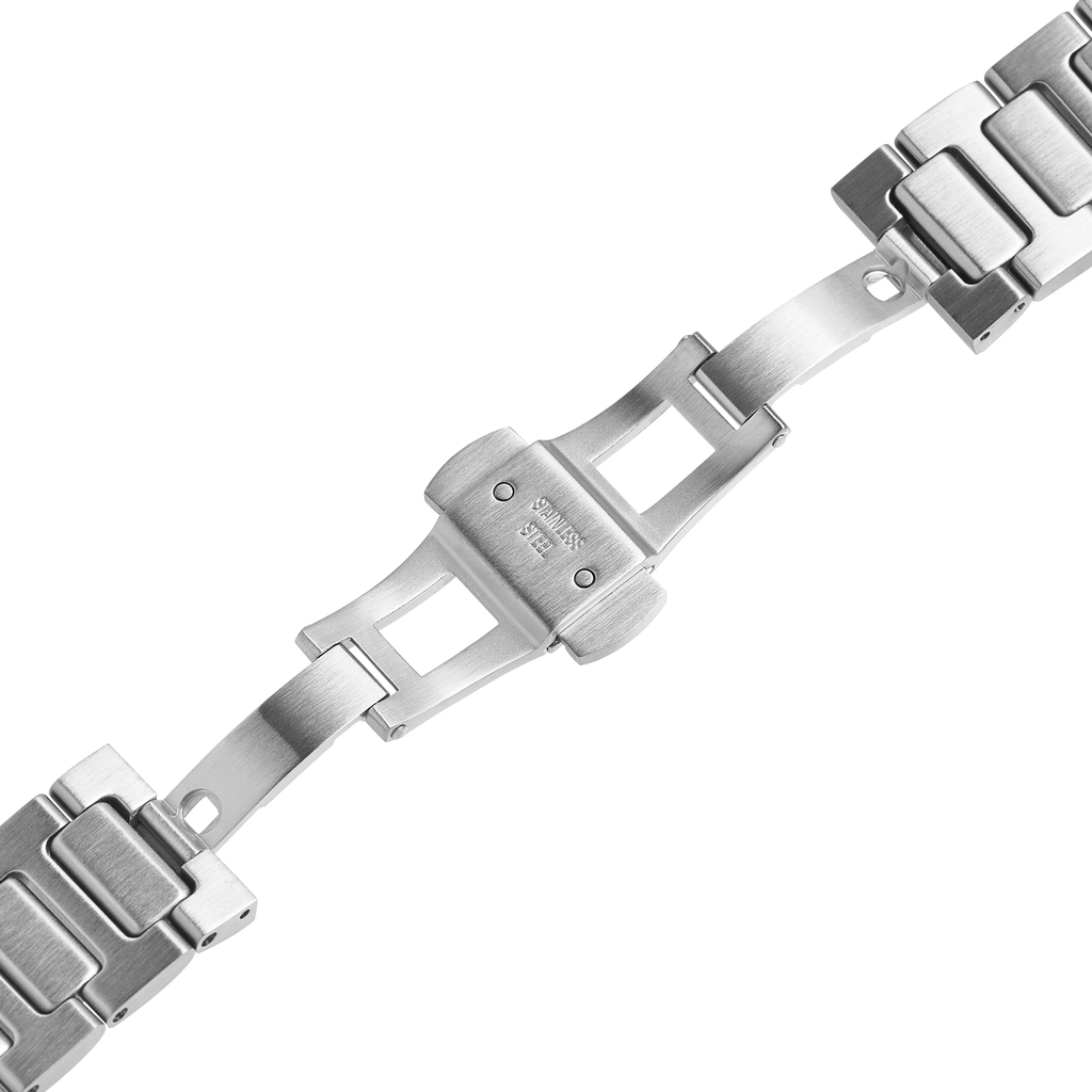 - Integrated H-Link Bracelet with Milled Butterfly Deployant Clasp (Tapers down to 18mm)