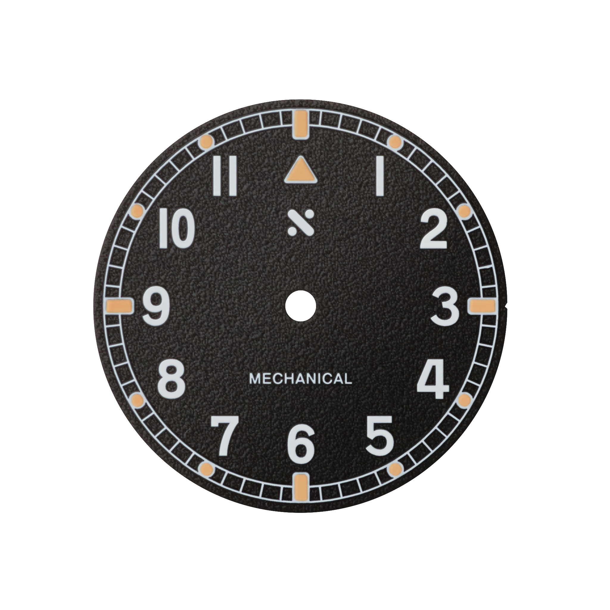 This Pioneer Pilot Black dial is filled with a special blend of C3 Super-LumiNova® Lume and pigments to produce a creamy, vintage lume colour. Note: To achieve this lume blend, the lume intensity will not be as strong or last as long as dials with original C3 lume.