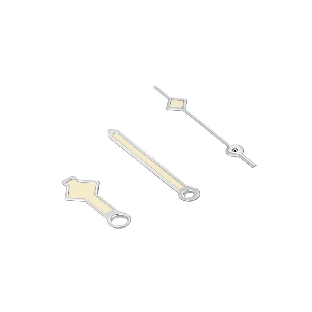 These watch hands are filled with a custom blend of C3 Super-LumiNova and brown pigments to achieve a warm, creamy lume tone. Due to the added pigments, please note that lume intensity and longevity are reduced compared to standard C3 Lume.