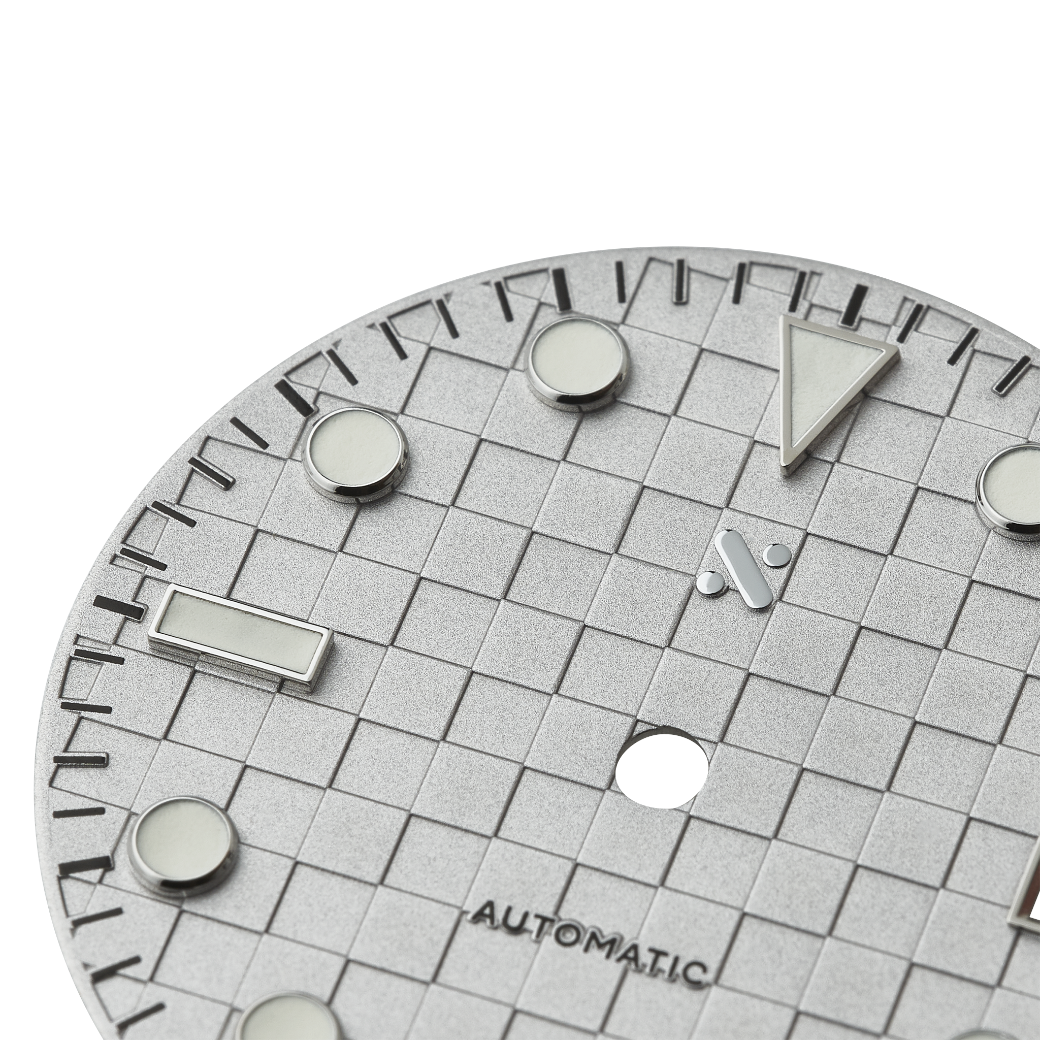 Classic meets modern with our Checkerboard Dial in Cool Grey. This bold graphic pattern seamlessly blends traditional Japanese aesthetics with contemporary design. The raised embossing offers a tactile experience and adds striking visual depth, making it perfect for modders who want to make a statement with their timepiece.