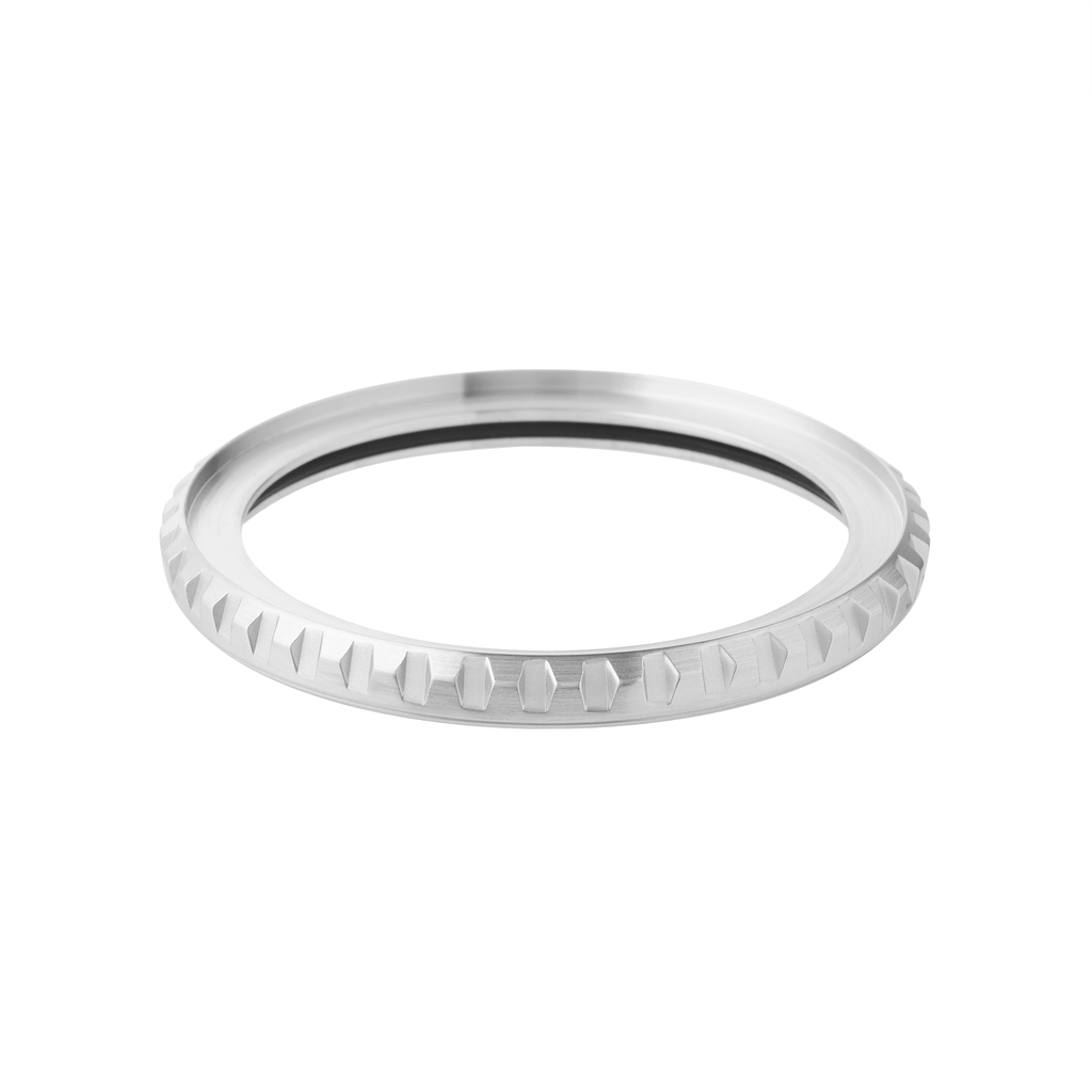 Inspired by the LX line, this brushed LX bezel is beautifully finished and its sharp angular teeth manages to look tool-ish and classy at the same time.