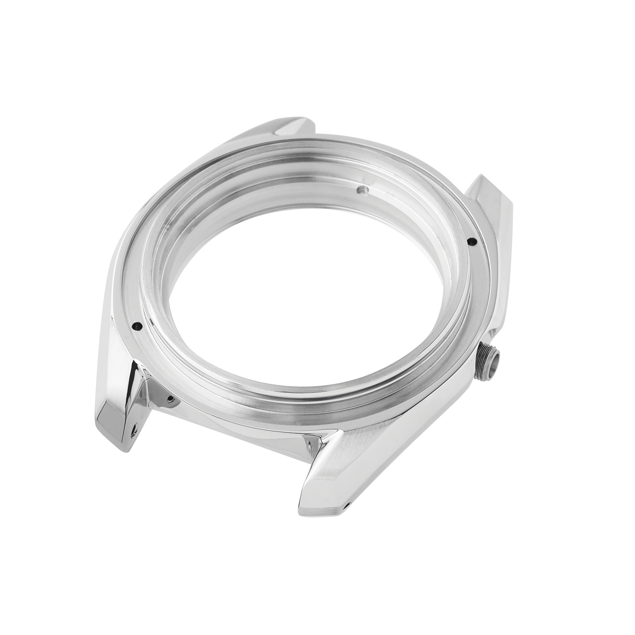 * Lugs perforadosSon orificios en las orejeras perforadas a través del estuche de reloj que permite la liberación de las barras de resorte, pinchando una herramienta afilada a través de ellos, lo que permite un fácil cambio de correas.