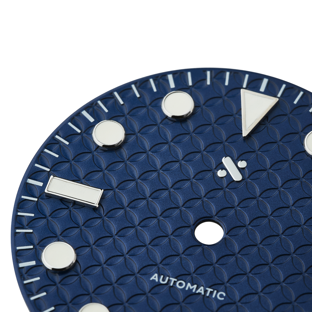The Shippo dial is filled with C3 Super-LumiNova® Lume. C3 Super-LumiNova Lume is the brightest of all lume colours, topping the Super-LumiNova table at 100% relative brightness and giving off a bright, green glow that typically lasts for 7 to 10 hours. It will match the stock Seiko LumiBrite hands and any of our watch hands options perfectly.