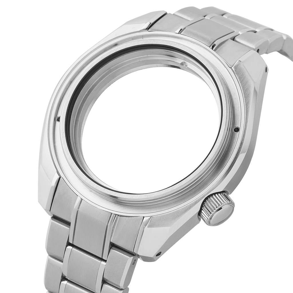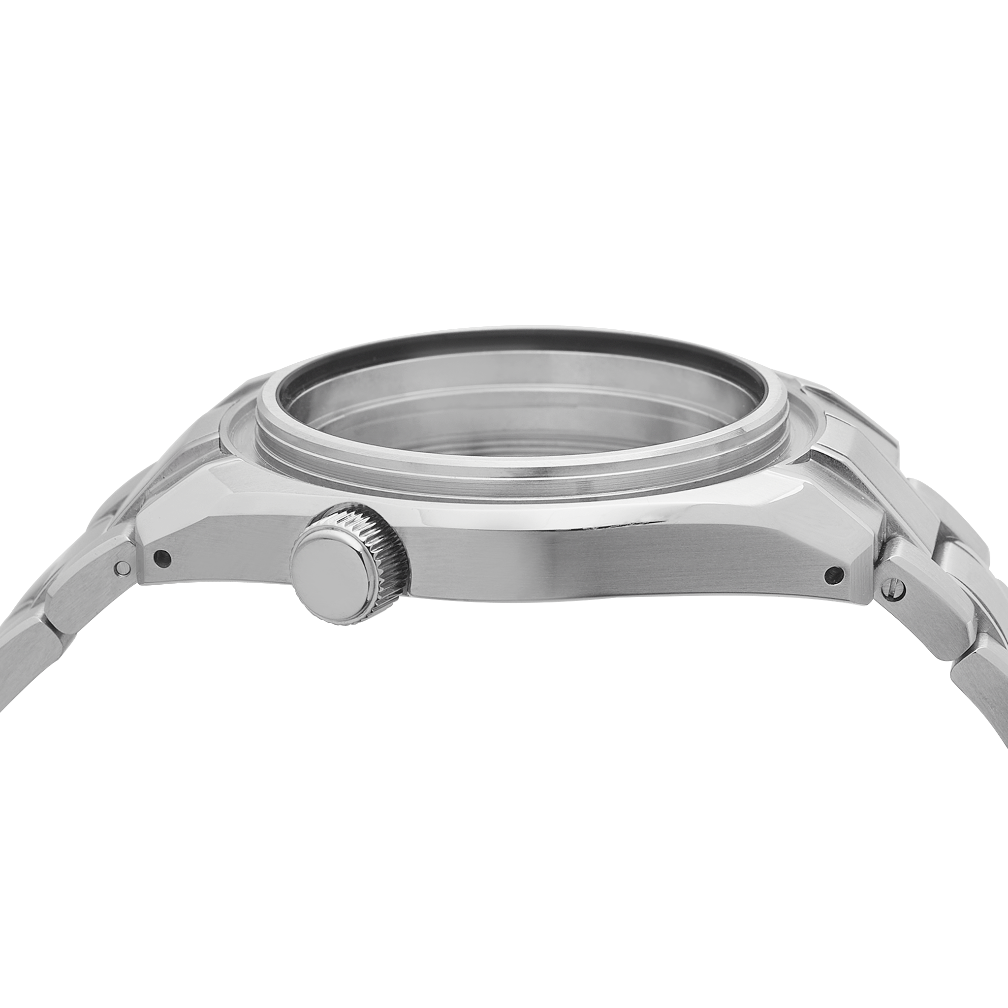 Introducing the NMK944 SKX007/SRPD GS Dive Watch Case Bundle w GS Bracelet in a sleek Brushed Steel Finish. It takes all the sharp, angular details we all know and love in the MM300 and steps it up a notch - with more angles! The result is a robust dive watch silhouette that embodies the iconic GS design language. The NMK944 is compatible with all our SKX007 parts (except the bracelet), offering a plethora of modding possibilities!