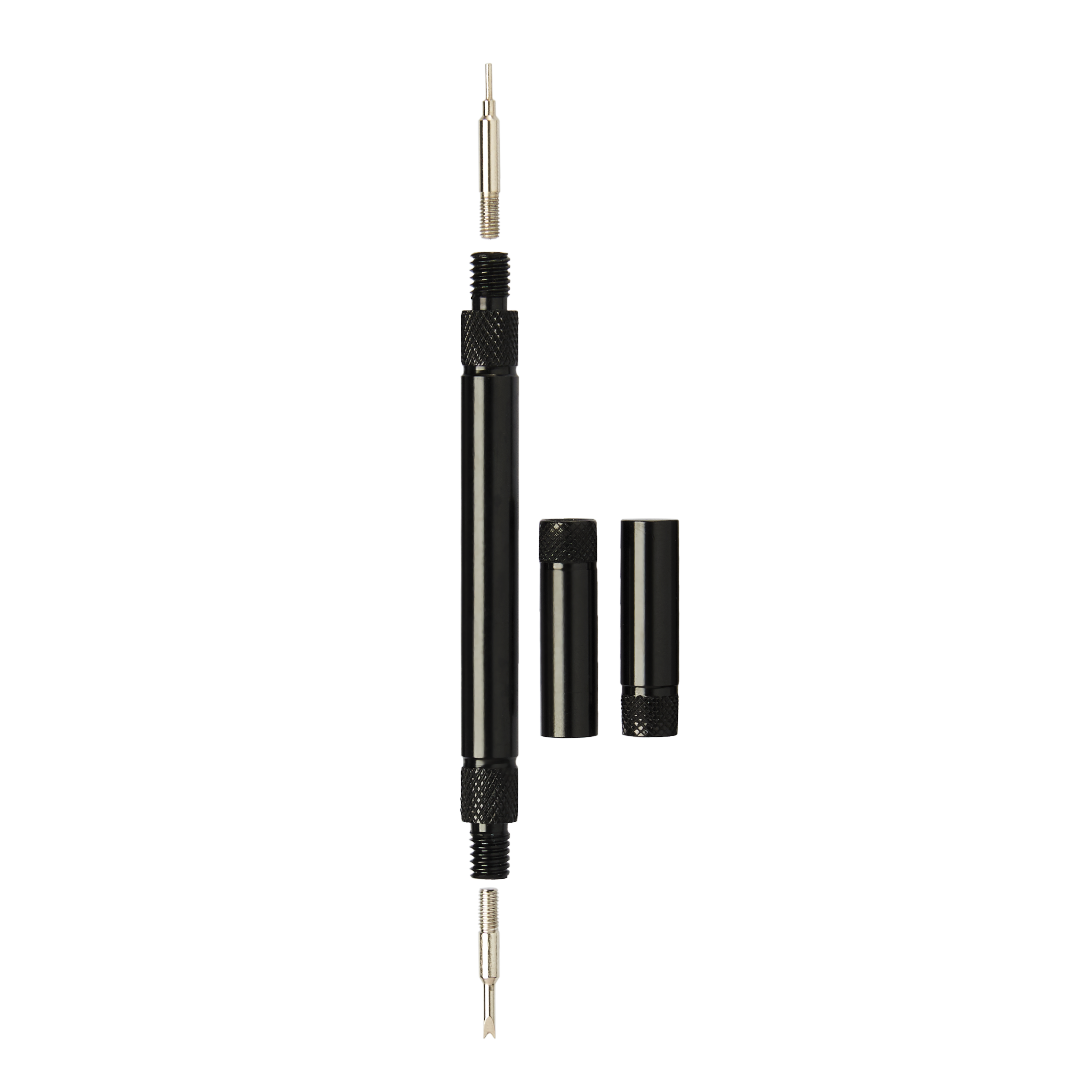 Besoin de nous en disons plus? Utilisez cet outil pour éliminer les barres de ressort des bretelles de montre et des bracelets! Faites glisser l'extrémité fourchue entre la sangle et l'extrémité à pattes pour relâcher les barres à ressort, et l'extrémité pointue peut être utilisée pour éliminer les bureaux de sauvegarde sur des caisses de surveillance avec des pattes percées.