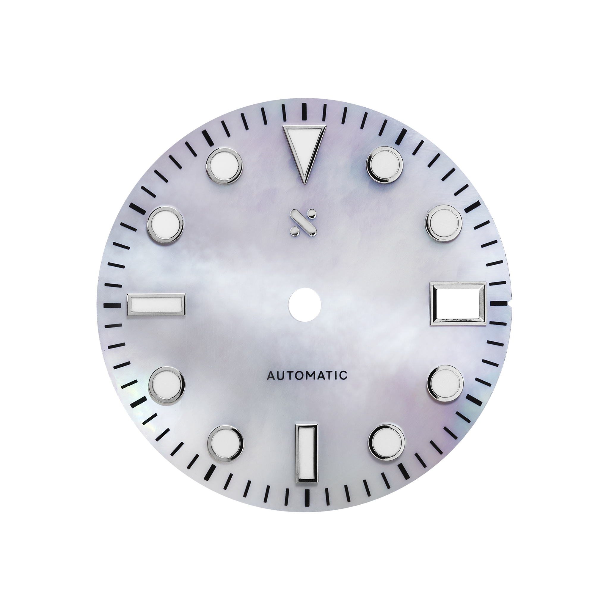 Un matériau haut de gamme rencontre un style intemporel dans ce cadran blanc perle de la nacre Divemaster. La mère blanche de la perle crée un iristécence deViolet et vert sur un fond de crème car il attrape la lumière et change de couleur à différents angles de vision. Cela fera très certainement votre mod de démarquage!