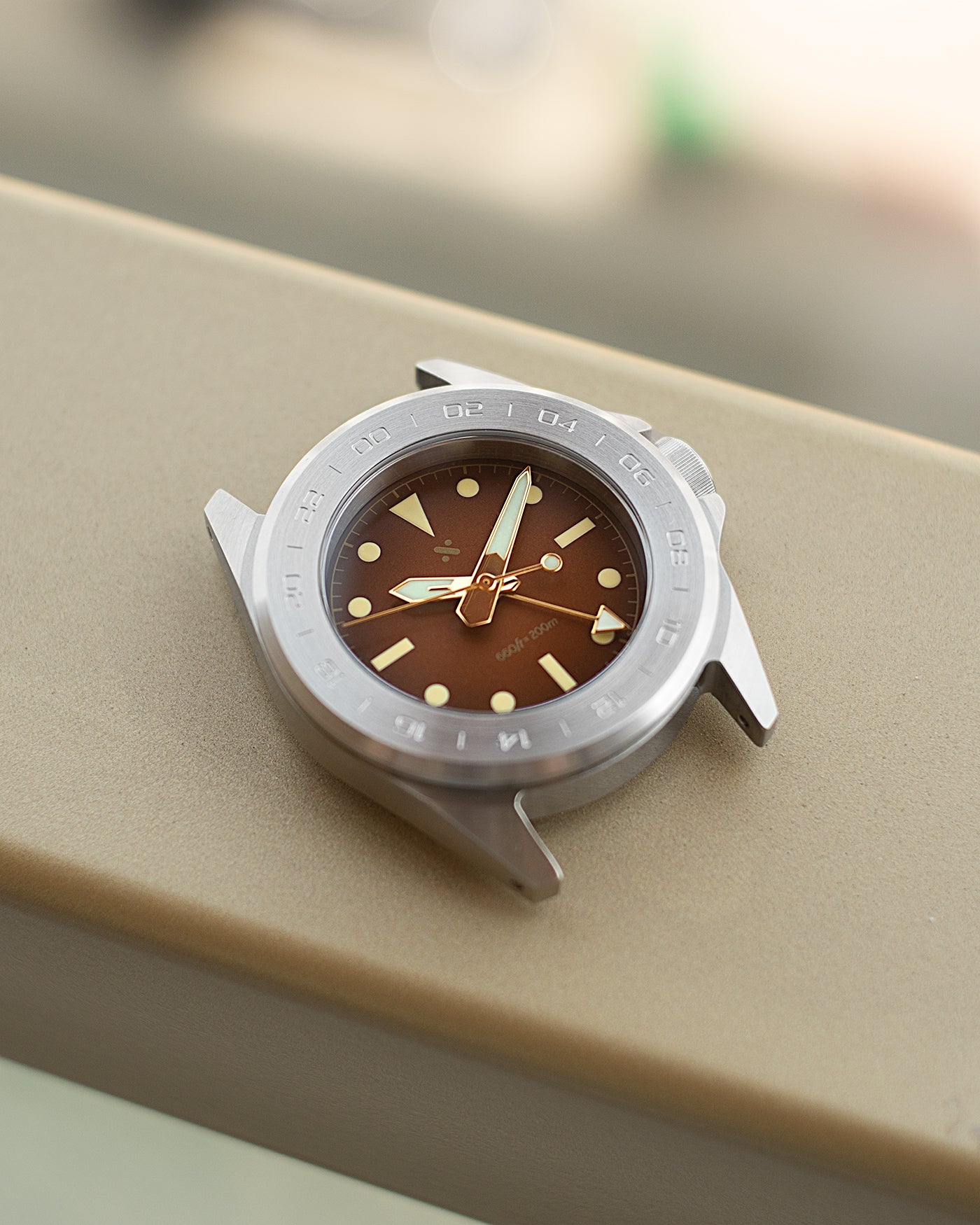 Meet our NMK959 N4 GMT Tool Case Bundle in Steel Finish: all the presence and attitude of a chunky tool watch, with the added utility of a dedicated second time zone. The brushed steel bezel is engraved with a minimal 24-hour scale, framing your dial like a piece of instrument hardware and giving the watch a purposeful, travel-ready look that still feels clean and modern.