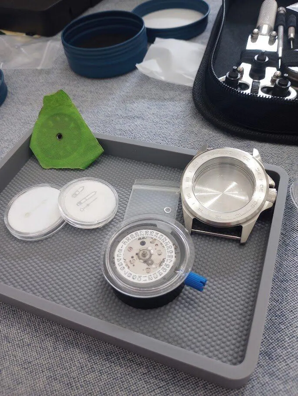 Comes supplied with screws, tabs, dial spacer and crown stem.