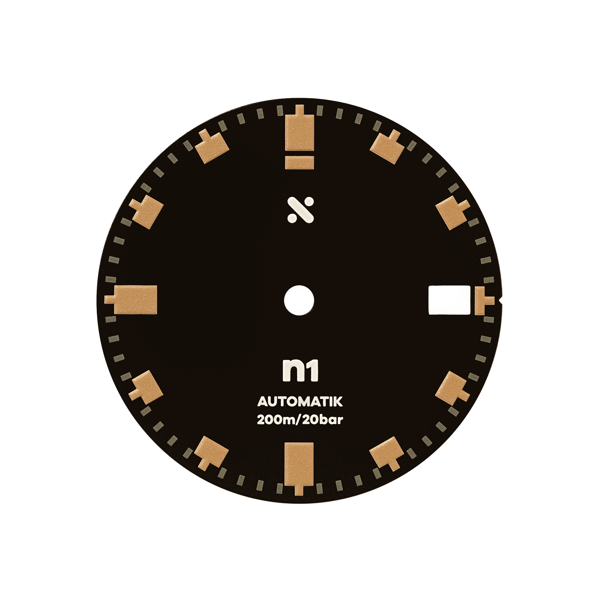Our U1 dial is filled with C3 Super-LumiNova® Lume and brown pigments to achieve a warm, creamy lume tone. Due to the added pigments, please note that lume intensity and longevity are reduced compared to standard C3 Lume.