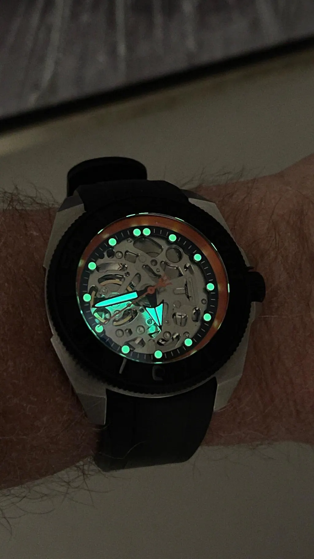 Available in C3 (Green) and BGW9 (Blue) Super-LumiNova® Lume. C3 Super-LumiNova Lume is the brightest of all lume colours, topping the Super-LumiNova table at 100% relative brightness and giving off a bright, green glow that typically lasts for 7 to 10 hours. BGW9 Super-LumiNova Lume is the next brightest lume colour and emits a brilliant blue colour.